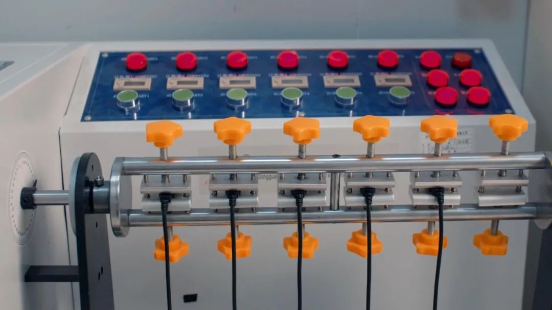 到这里对手柄本体的测试就基本做完了,但通哥发现旁边还有一个奇妙的机器在折磨着北通阿修罗3 有线版的USB线,这个“线材折磨机”会对手柄的USB线材进行5000次的弯折测试。