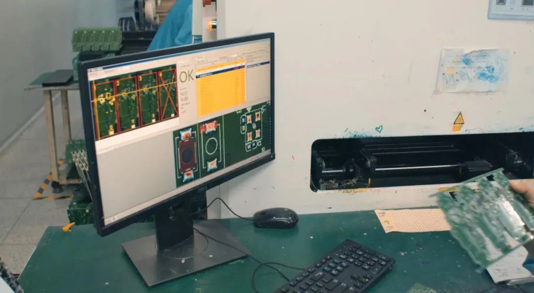 贴完片的PCB会送到工作人员手中,使用工学检测机对PCB进行第一次质量检测,保证送到后续生产线的PCB功能正常。