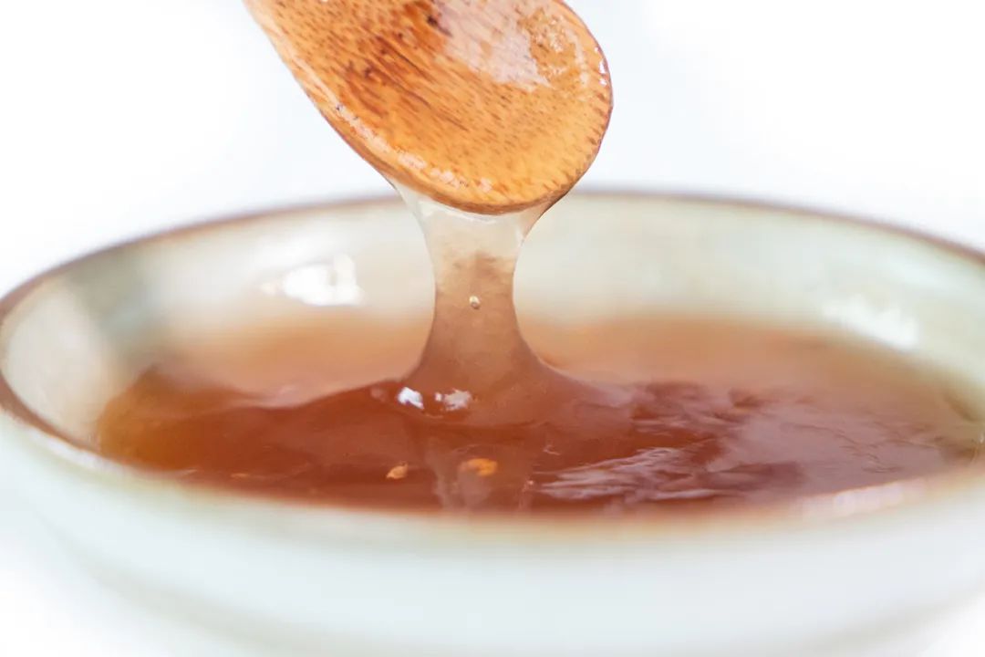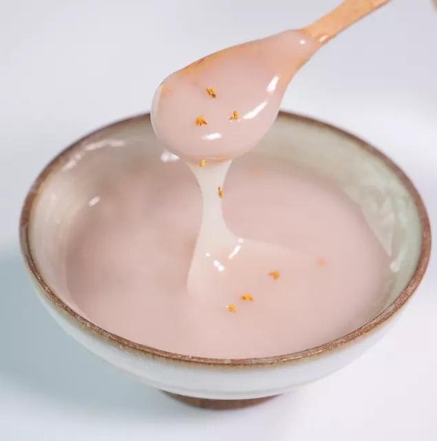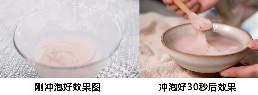 这款藕粉因为纯度高,富含铁元素,接触空气易氧化,颜色会由白渐渐转为微红,晶莹剔透的,像琥珀一样。