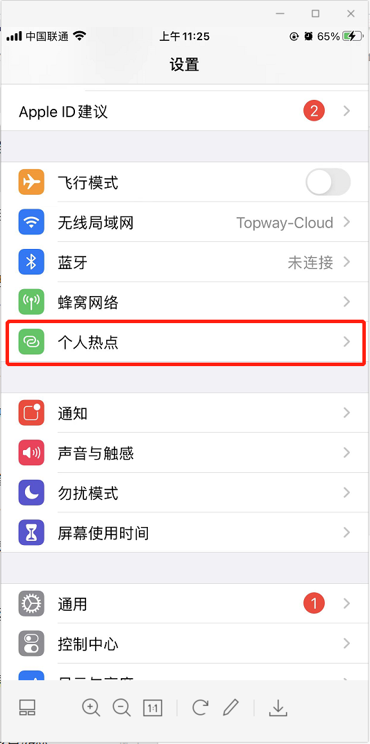 苹果手机很简单,找到热点,选择打开就可以,入口比较好找