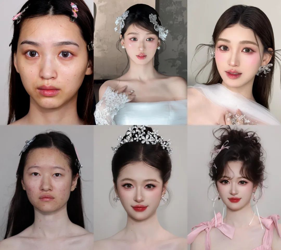 但最让我瞳孔地震的,是看着化妆师像施展魔法般:
