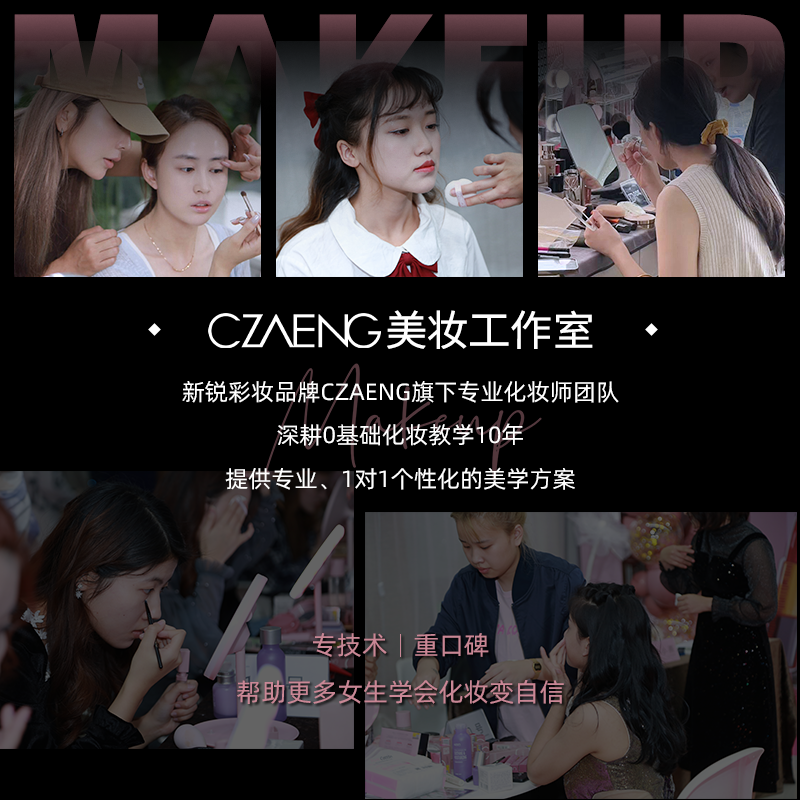一个人的力量是有限的,为了能帮到更多素人姐妹逆袭,2015年我成立了CZAENG美妆工作室,组建了100+专业彩妆师的线上化妆教学团队,为客户提供专业1对1个性化的美学方案。