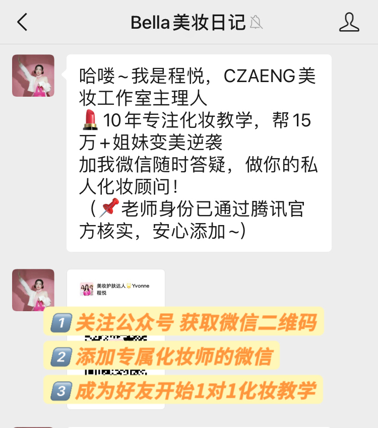 2️⃣ 添加我的微信,发送你的素颜照+最想解决的妆容难题,让我这个“云闺蜜”陪你逆袭!!