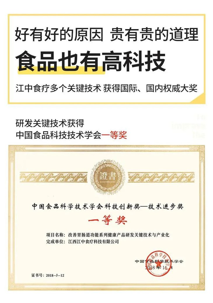 尤其是江中在食疗领域取得了很大的成就,不仅掌握了多个关键技术,还获得了很多国家级奖项认可!