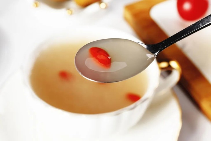 随之再倒入滚烫的开水,同时勺子轻轻搅拌,不一会儿,一碗养颜美容的滋补品就制作而成了!