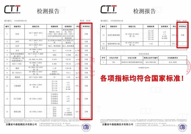 我们也仔细检查了产品的第三方出具的质检报告,各项指标符合国家标准,可以放心食用。