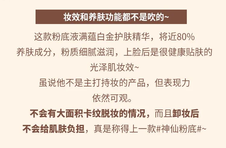 ♀️这款粉底液被称为贵妇级粉底液,专为亚洲人打造的色号,内含80%的养肤精华,上妆即养肤 丝绒质地,细腻易推开。