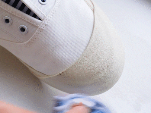 尤其每次刚刷干净穿着坐地铁、乘电梯的时候,一准会被踩到。如果是纯布面的小白鞋,被踩后大大的黑脚印擦都擦不掉,一整天都很不自在。