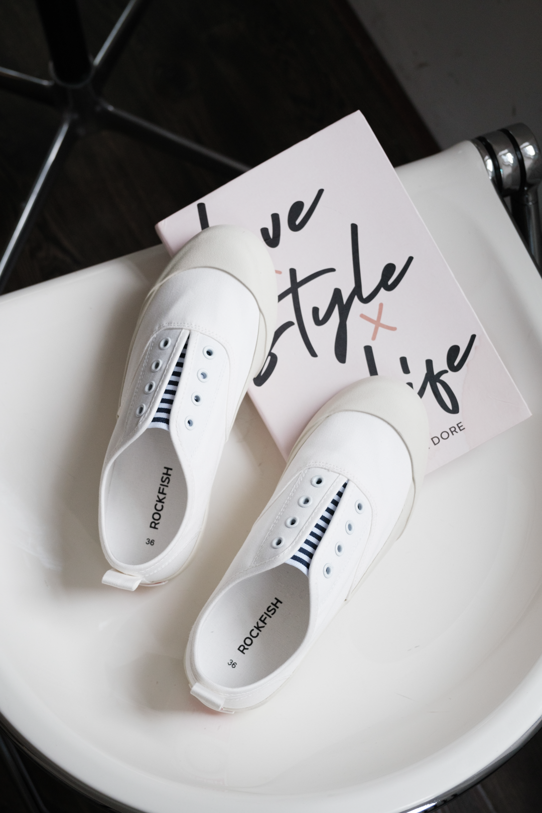 首先出场的是我的最爱!最近天天在穿它——Rockfish719懒人一脚蹬。大家撞鞋不说,我自己有一双,工作的直播间也有一双,属于生活和工作都离不开的完美小白鞋。