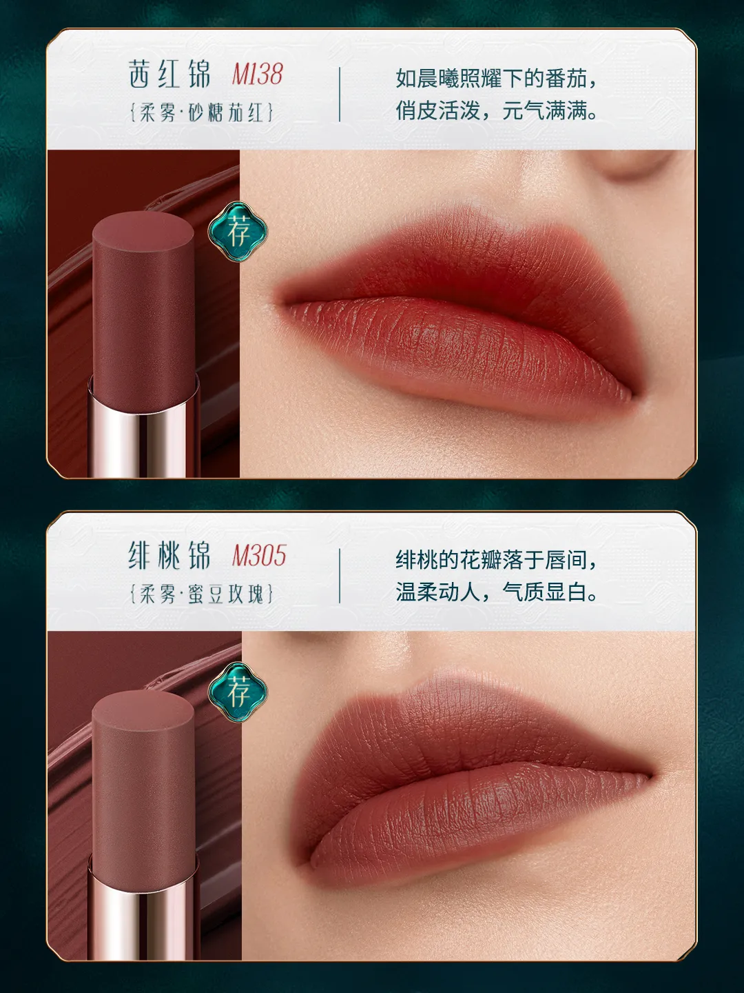花西子研发团队在调研中发现,大部分哑光口红上唇干涩且容易不均匀,所以我们决定革新哑光口红质地,打造一支兼顾顺滑涂抹感和高级感妆效的哑光口红。