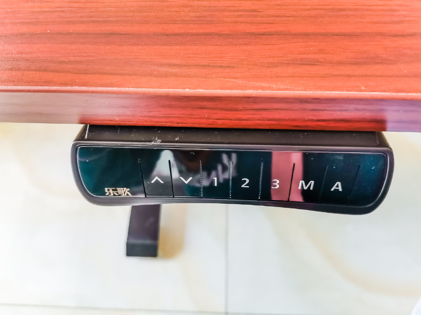乐歌采用国内自主研发的电机与控制盒并获得欧美国家的认证,电机拥有防漏电、断电保护,高功率输出。出厂检测,层层保障,升降使用,更有保障。轻、快、稳,三重升降体验,轻声如梭,仅50分贝,升降声音低于键盘打字敲击声。快速升降,25MM/秒,从初始高度到上限,仅需20秒。匀速平稳,杯水平衡,电机平衡驱动,升降全程桌面无抖动。3档高度记忆,一键还原家人常用高度。控制按键,有7个按键,分别是向上键、向下键、自定义1、自定义2、自定义3、保存键M、久坐提醒键A,通过调整上下的高度,符合日常自己的使用习惯,可以按“M”键保存,显示屏显示“S-”,这时可以分别按下1、2、3,保存三个常用的高度。