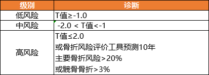 我国《绝经后早期乳腺癌芳香化酶抑制剂治疗相关的骨安全管理专家共识》将骨丢失及骨质疏松危险分为三级: