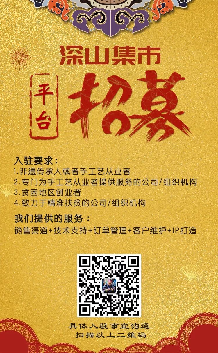 积极联动社会各界资源,邀请众多非物质文化遗产传承人以及手工艺人入驻平台,提供线上线下多场景展示机会,争取最大量曝光,让“守艺”向“授艺”转变,让手艺人有新的舞台和空间,让匠人价值得到应有释放,让民族传统文化在最好的时代熠熠生辉,深山集市,正不遗余力。