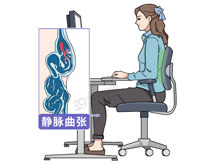 长期保持站立或者坐的姿势,可能会导致下肢血液循环不畅,血液淤积到下肢静脉中,导致静脉因为压力增大的迂曲扩张。