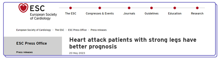 2023 年欧洲心脏病学会(ESC)心衰大会上的一项研究显示,腿部肌肉强壮的心梗患者,恶化至心衰的风险更低。