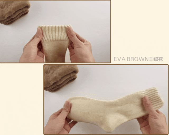 我们这次经过两个月的测评,终于确定了这款——EVA BROWN男女加厚羊绒袜。