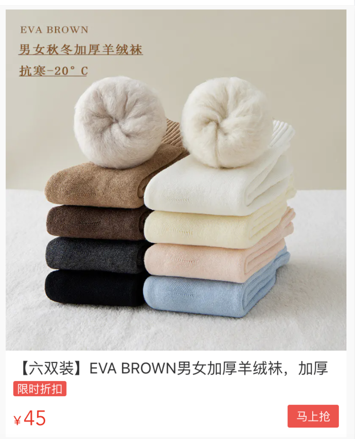 这样品质的羊绒袜,我们直接跟工厂拿货,去掉高额中间价,货源直销价:45/6双!真薅羊毛了!!
