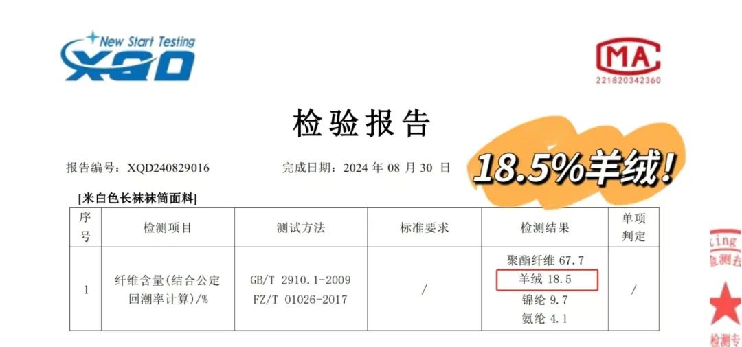 普通羊毛袜最多含10%羊绒,这款袜子经权威检测羊绒含量高达18.5%!!
