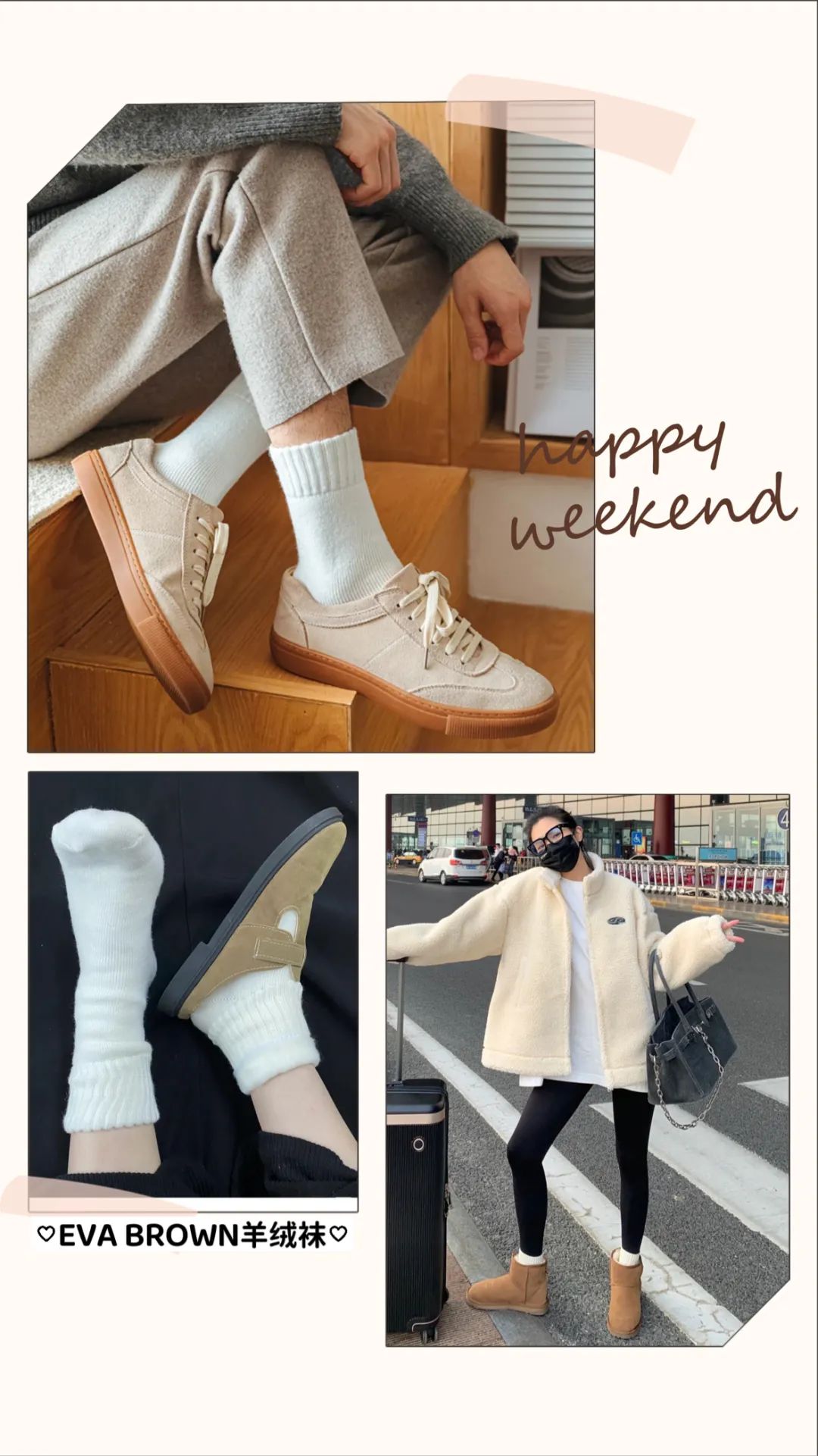 中筒袜口刚刚好把重要的脚踝也挡住,加倍呵护温暖,赶走冬日冻脚丫!!