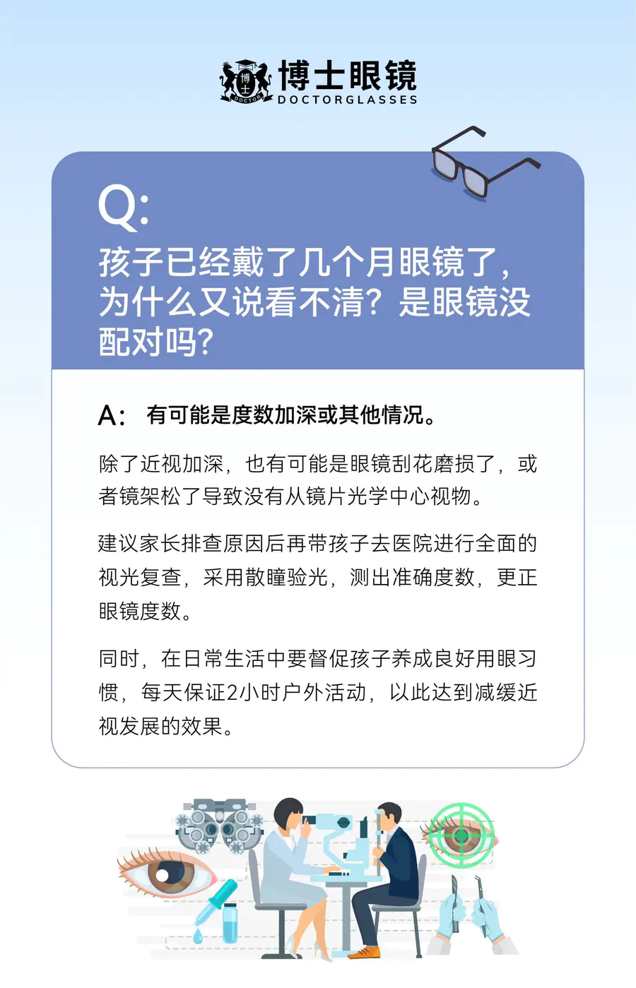 Q6:孩子已经戴了几个月眼镜了,为什么又说看不清?是眼镜没配对吗?