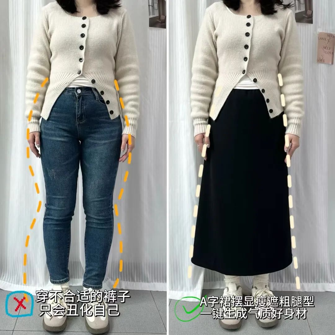 💡相比于裤子,裙子对腿型的要求稍微低些。