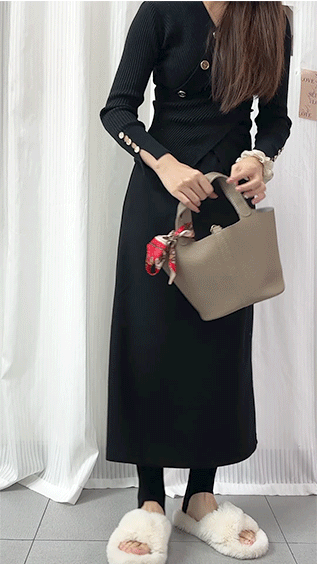 针织上衣搭配黑色半身裙,整体给人优雅婉约既视感