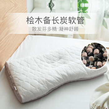 这款枕头最有特点的地方就是里面填充了活性炭因子的软管和日本桧木。