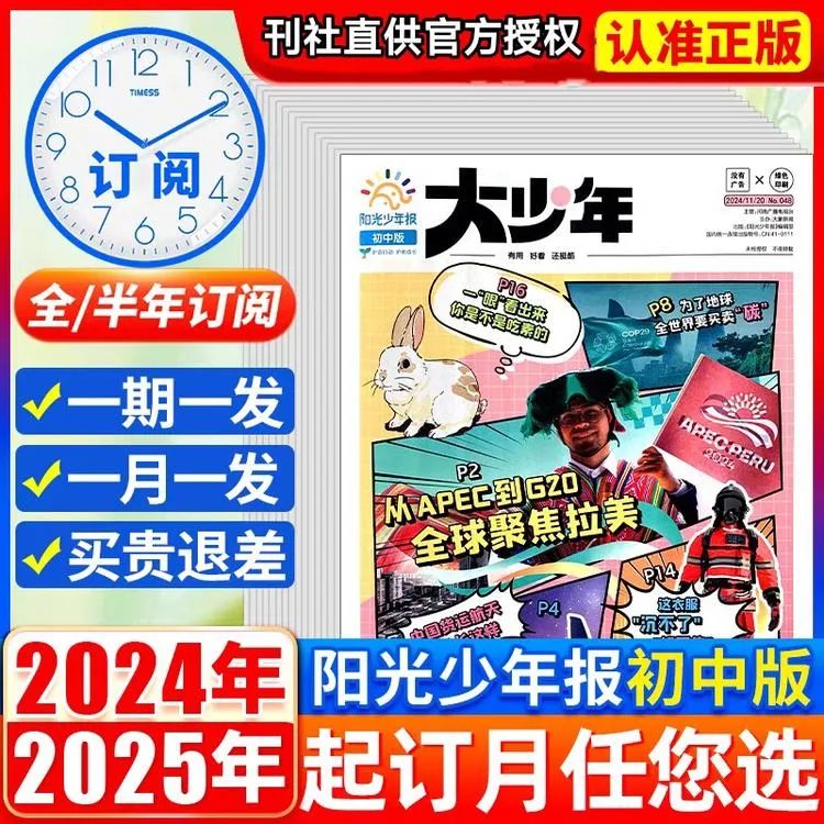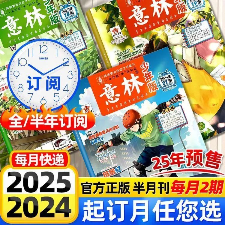 《科学家少年》——AI互动助读+3大视频课+高清图解,培养steam思维的大视野全景思维科普《新华月报小记者》—— 看新闻就能锻炼观察力和写作能力《商界少年》—— 专为9-15岁孩子打造的财商素养启蒙杂志《北京少年报》—— 给孩子新闻启蒙的“新闻通识报”《作文素材初中版》—— 为写作量身定做的素材神器!《英语街初中版》—— 一本以初中生的视角来阅读世界的双语杂志《英语街小学版》—— 打开《英语街小学生英语》,为未来开启无限可能!《中国少年英语报》——小学分级英语读物, 趣味阅读课外加餐,单词语法轻松学习《意林作文素材高考版》—— 严格依据新考纲做内容,新考点都覆盖!《作文素材高考版》—— 拥有此书,一切作文问题迎刃而解《大语文知识画报》—— 完全同步小学课本,课内课外有趣的知识,全部一网打尽!《意林》—— 小故事大智慧、小幽默大道理、小视角大意境《探索地理》—— 以自然与生活相结合,培养孩子的各项能力《环球少年地理幼儿版》—— 美国《国家地理》LittleKIDS 中文版《东方娃娃幼儿大数学》—— 权威专家编写 专业启蒙护航