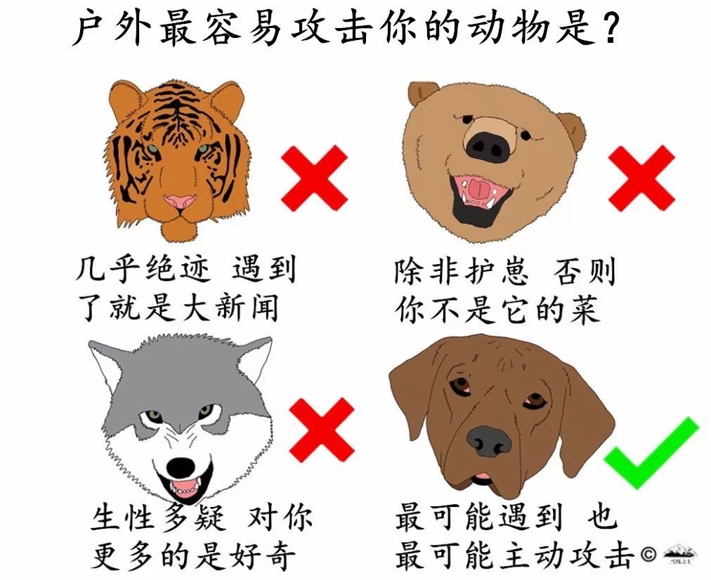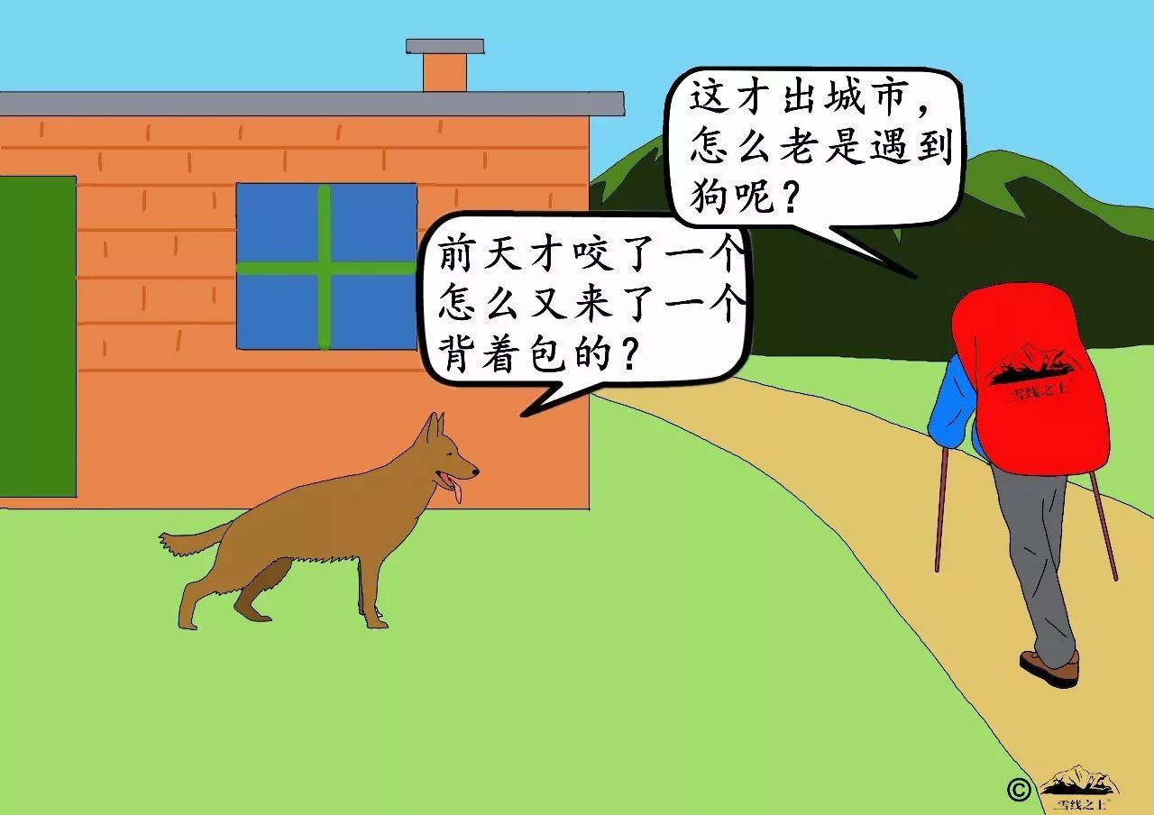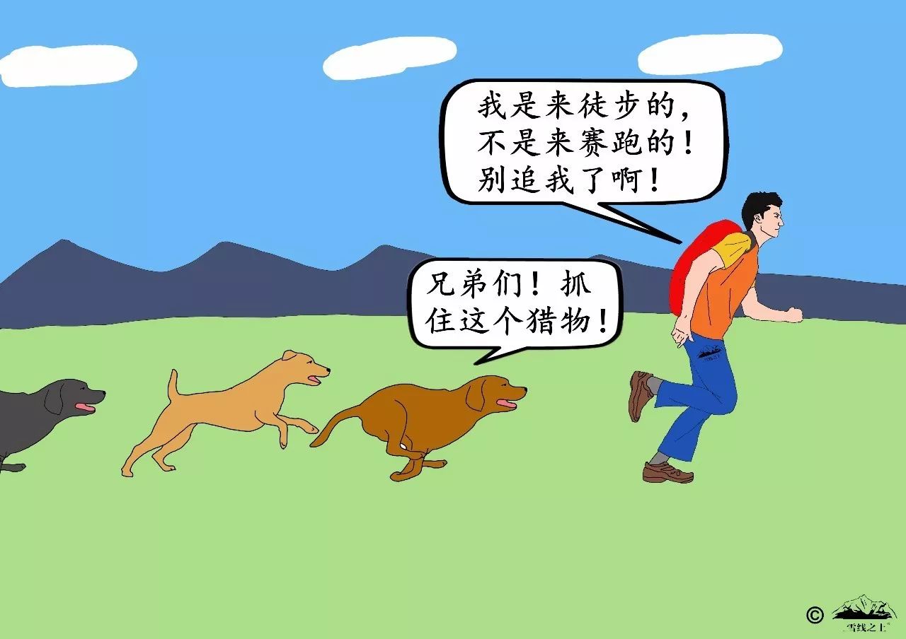 户外徒步遇到狗再正常不过了,有时你在郊野徒步,路过村寨,农家护院的狗会一路狂吠,表情狰狞,似乎马上要冲上来。