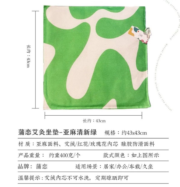 散发淡淡艾香,气味还能抗菌、驱除蚊虫螨虫等,小小坐垫,养生还驱虫,爱住了!