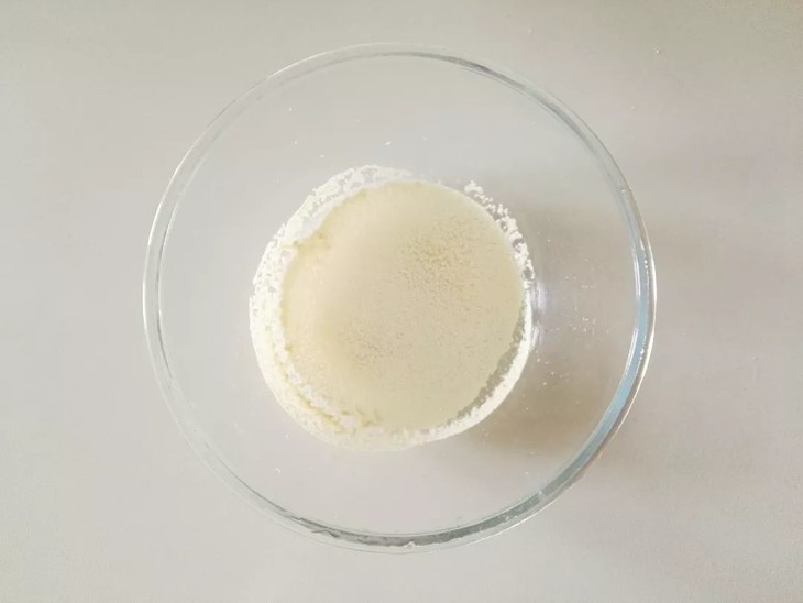 砂糖加入到玉米粉中,加入适量的开水,搅拌至无干粉,摊开晾凉放置备用
