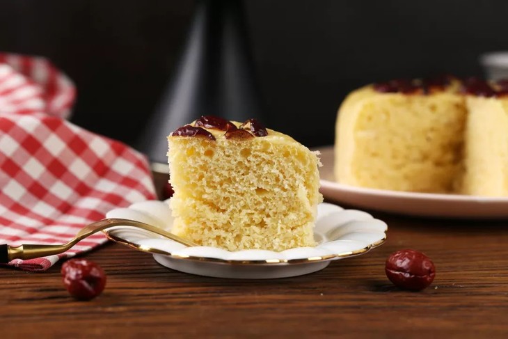 发酵为原体积的2倍大,发糕表面喷水,红枣切片,红枣片放在上面即可