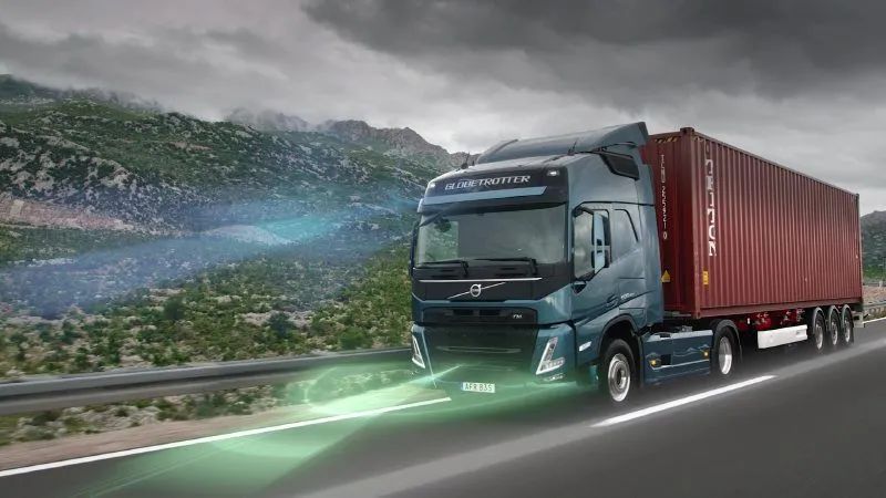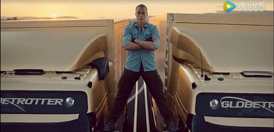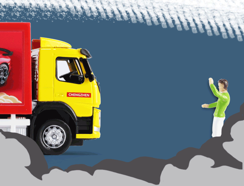 △四辆沃尔沃工程车相互堆叠,以表达车体的稳固性