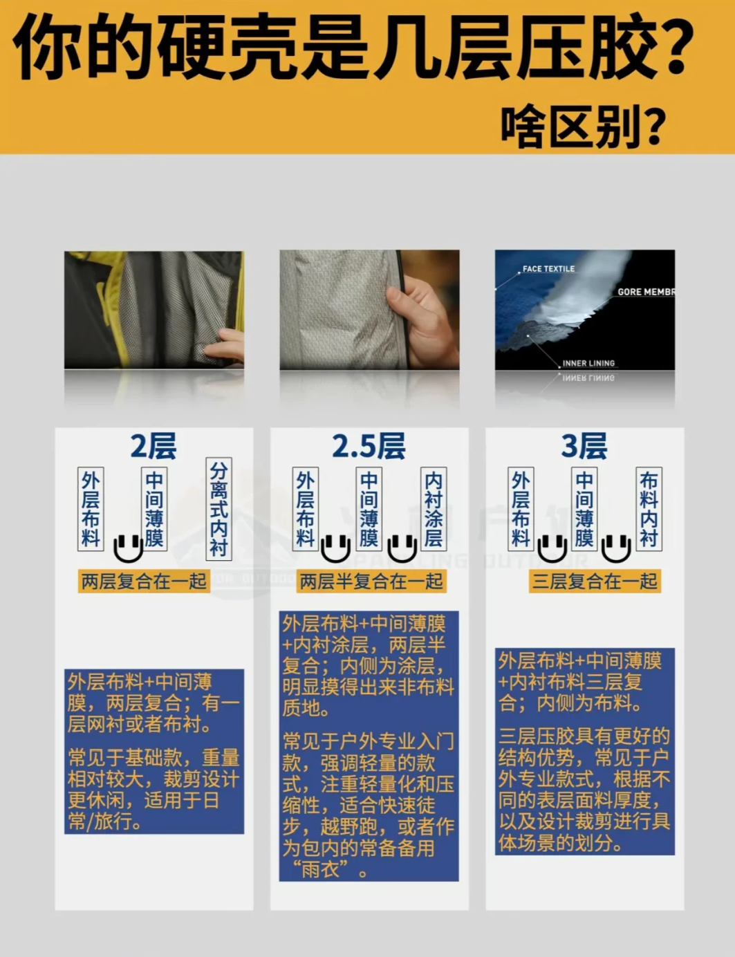 硬壳:更加恶劣雨雪环境中使用,虽然部分产品号称防暴雨,但几乎做不到。
