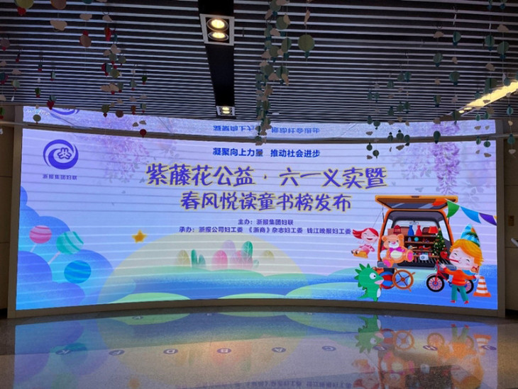 “六一”儿童节之际,浙江省谢宏公益基金会联合贝因美,走进浙报大院,助力浙报集团妇联主办的“紫藤花公益,六一义卖”公益活动。