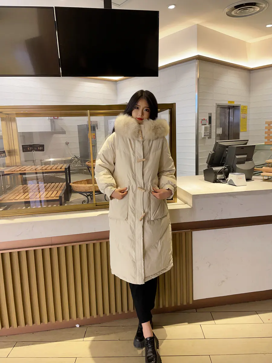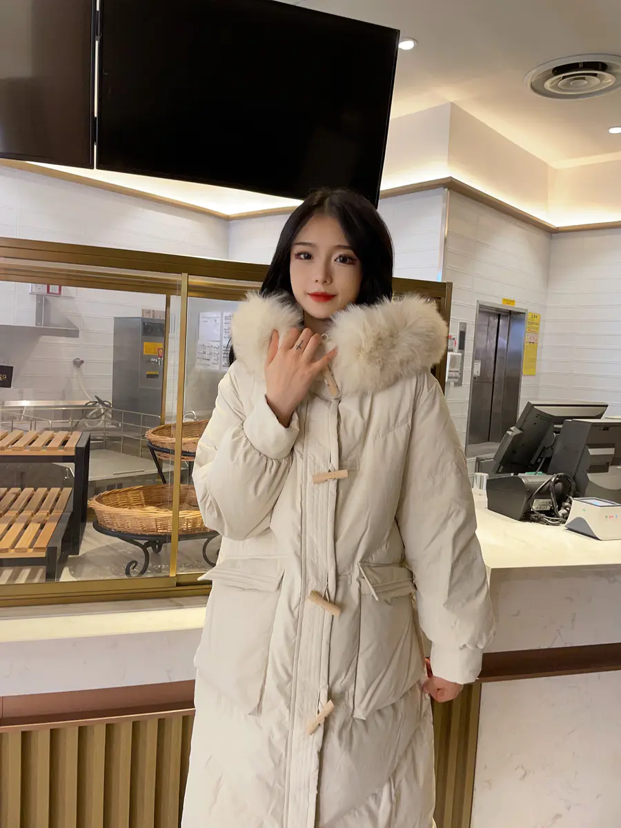 衣服挡风 厚实保暖 毛领挺大的 牛角扣的设计很有亮点 五金做工也好 面料有质感那种 穿起来很好看 好评
