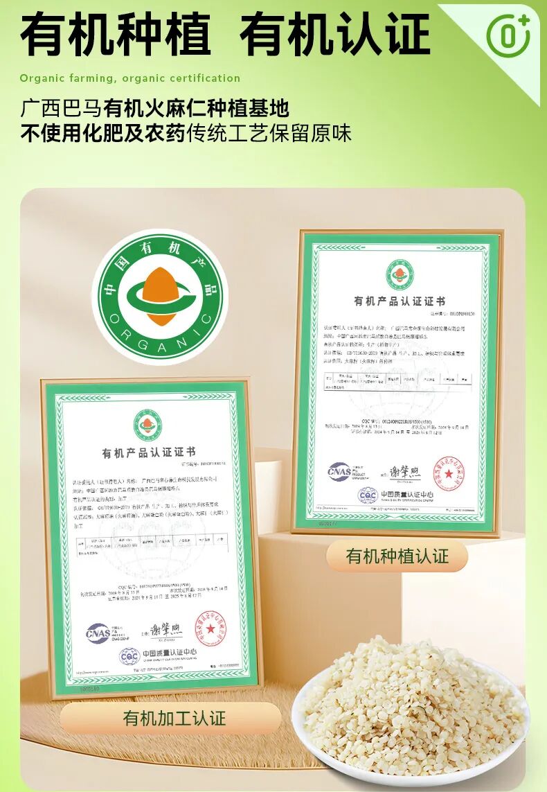 它的好不是随便说说的,我们更看重可验证的标准。这款火麻仁通过了我国有.机产品认证,代表它在种植中: