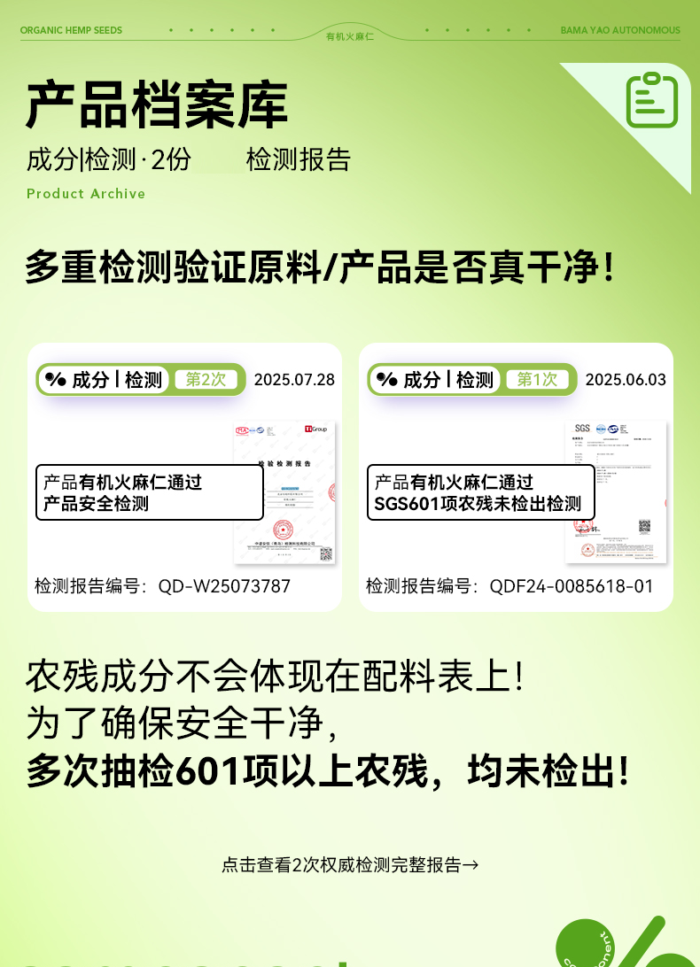 市面上的火麻仁不少,但为啥可可选了这款成分实验室有.机火麻仁?因为它从产地到工艺,把咱们在意的干净、营养、有 机做到了位,吃着既放心又省心!