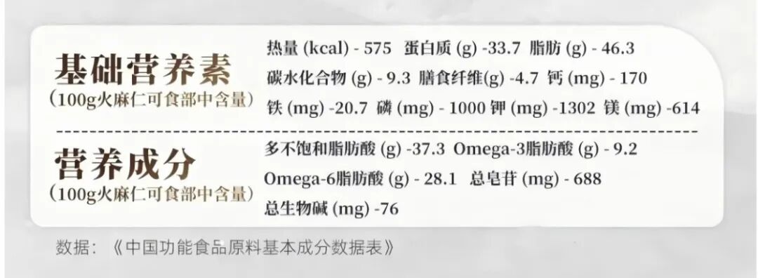 从营养方面看,火麻仁是极少数同时富含Omega-3和Omega-6的种仁,接近3:1的抗炎比例,堪称血管“清道夫”与“润滑剂”。
