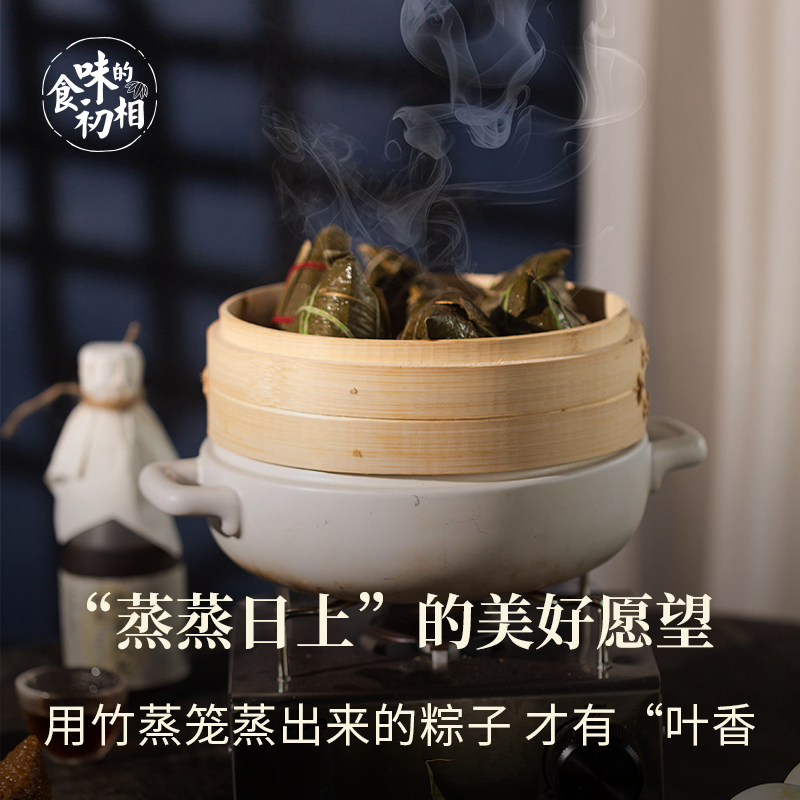 取出粽子之后,可直接放进蒸笼里煮熟食用。箬叶包裹的米、肉、蛋、莲子、山药,非“气不倒流”的蒸法不能还原滋味;这样烹制出的粽子,美味能达到巅峰。