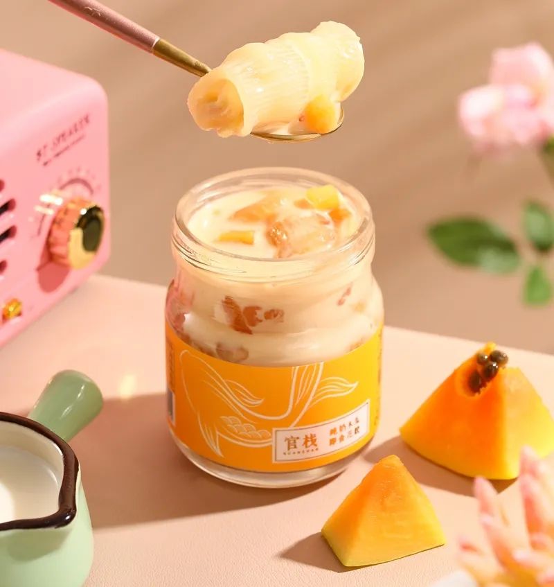 官栈纯奶即食花胶一共有3种口味,分别是红枣、木瓜和椰子,还有3种吃法:25℃丝滑牛奶、15℃软绵慕斯、3℃弹爽奶冻。三种口感,多重层次,爱美爱吃的小姐姐一定要买来试试,它会给你很多惊喜。