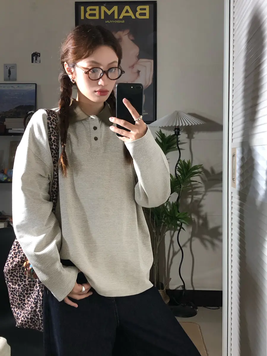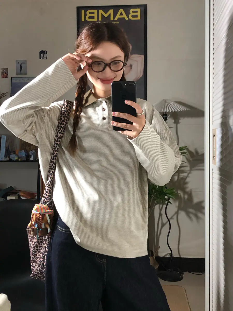 条纹polo衫简直是入秋百搭品 真的好慵懒!