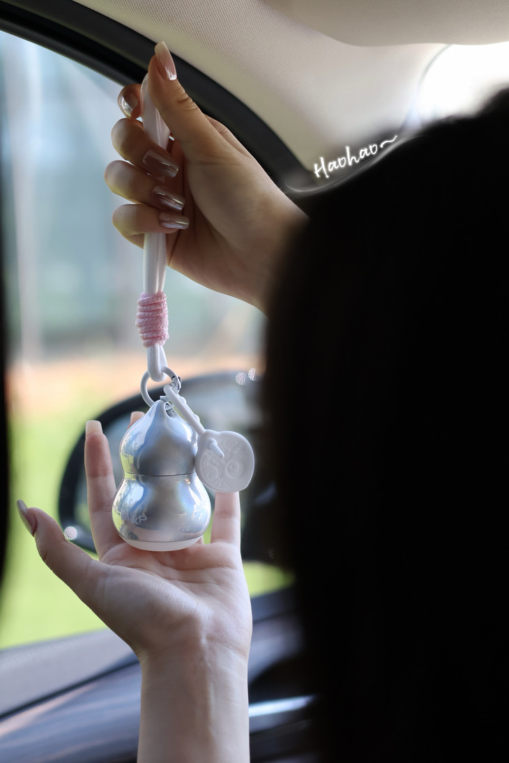 待到最后“桃花朵朵开”的余韵里,他声音沙哑得像是揉进了沙砾:“挂上后视镜吧,让它替我日日伴你行云路。”如今这枚银葫正悬在驾驶座上方,晨光里流转着七宝莲纹般的光晕。每当等红灯时抚过冰凉的金属纹路,指腹总会想起那日车厢里的云雨交缠——原来最隐秘的欢愉,竟能被锻造成这般雅致的文化信物,既可藏于香囊作贴身秘宝,亦能悬于车前当护身灵器。