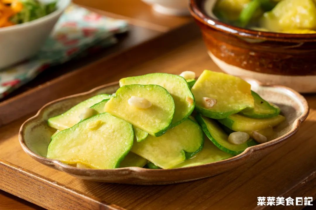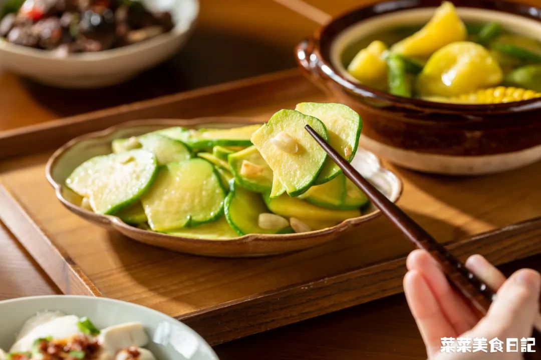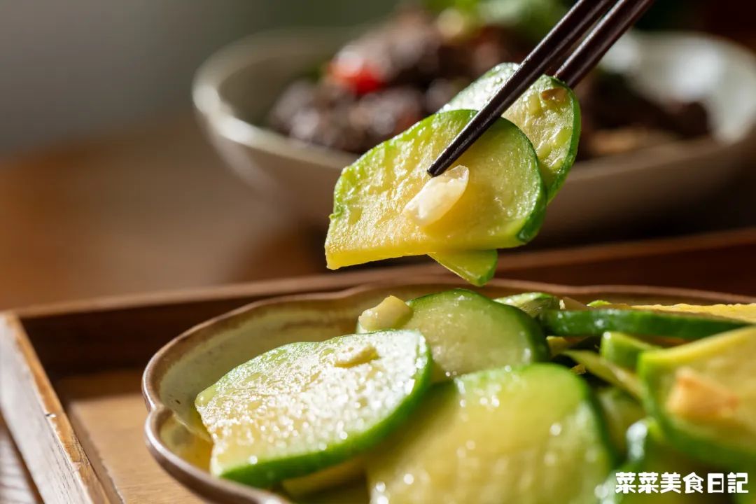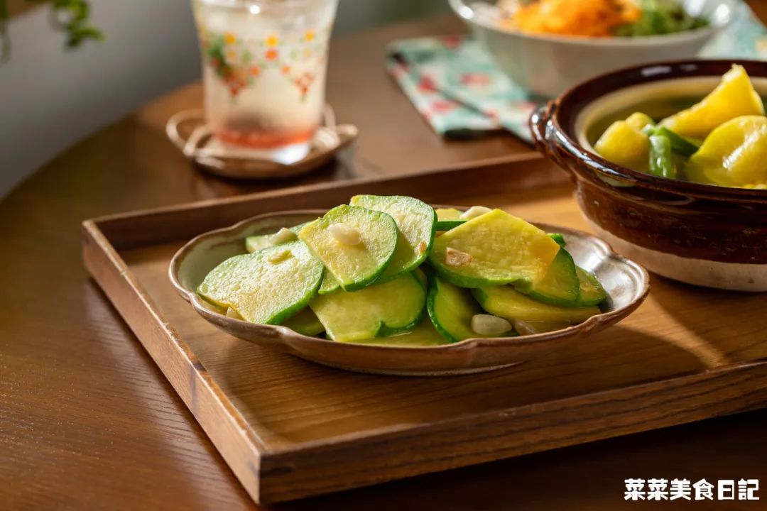 姜柄瓜500g 猪油1大勺 蒜片10g 盐1/2小勺