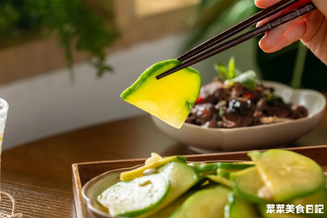 1.姜柄瓜搓洗一下表面,切去瓜柄,切片