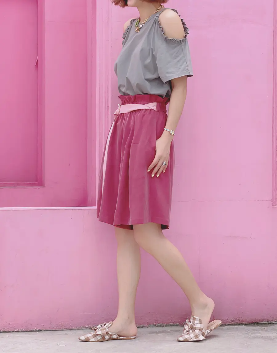把印花单品放在下装,上半身选择纯色系单品。