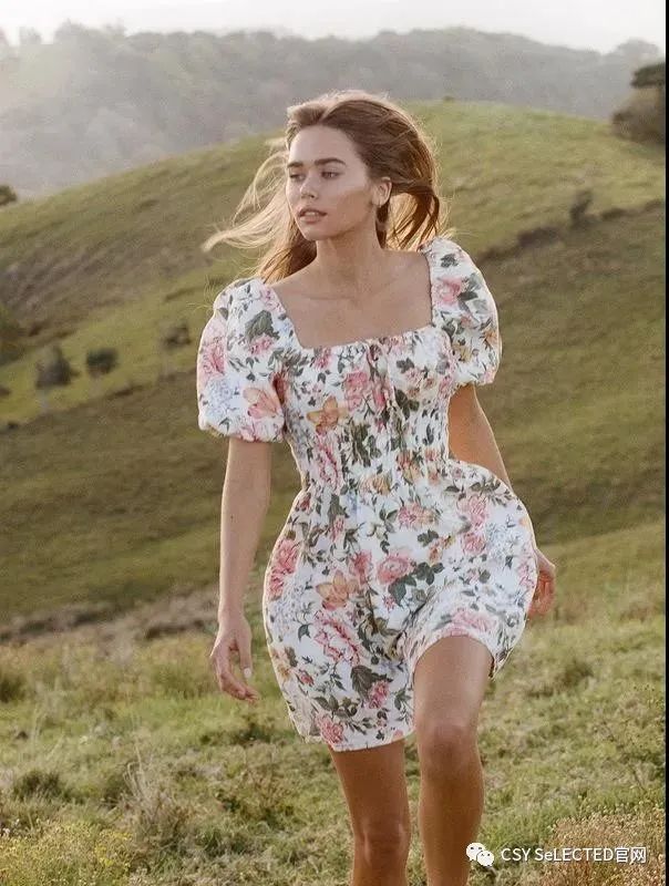各式柔软飘逸的裙装,辅以浪漫的花卉图案。