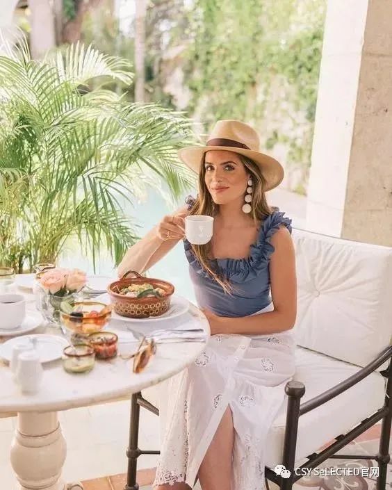 当然,度假的穿着还是少不了清爽飘逸。
