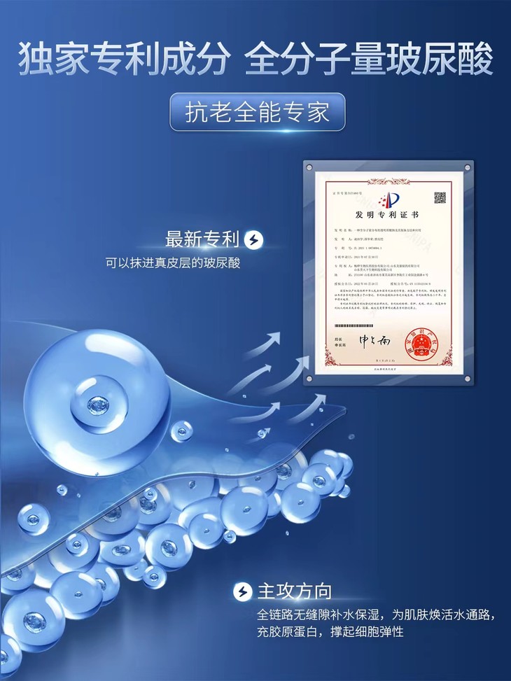 独家专利全分子量玻尿酸,像一个小水泵,“嗖”一下钻进肌肤里,给“口渴”肌肤密集补水,变得充盈饱满。肌肤被水分喂饱的同时生成I型胶原蛋白,仿佛有股无形的力量,呲溜一下跑进肌底,向上撑起肌肤弹性。