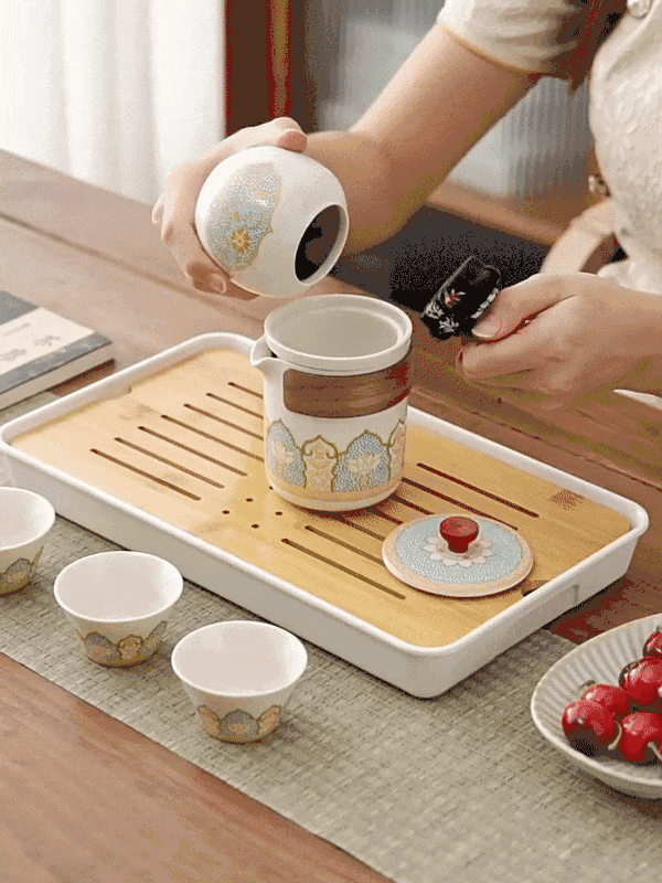 一应俱全的古韵旅行茶具套组,不仅居家适宜,还能旅行使用。